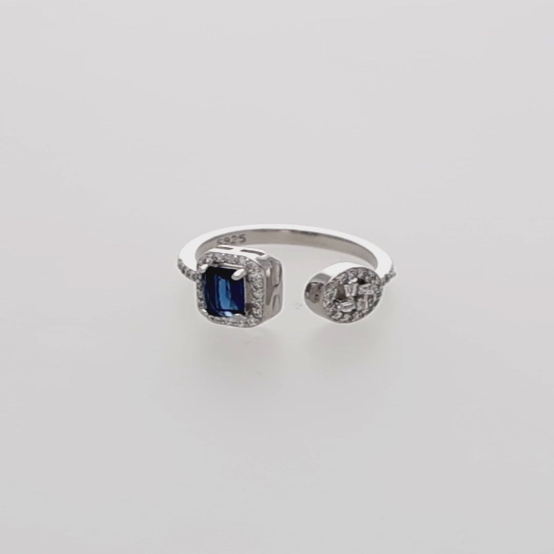 Blue Adjustable Ring in 92.5 Silver