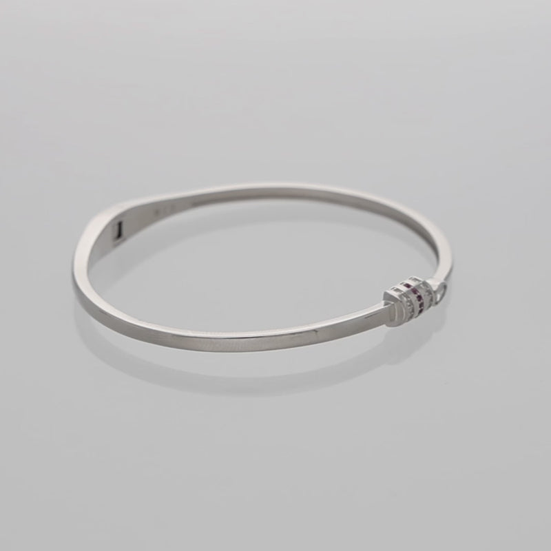 The Dual Charm Kada redefines modern elegance with its artful asymmetry. Crafted in 92.5% sterling silver and finished with a radiant rhodium polish, it balances a sleek rectangular detail on one end with a luminous circular white stone on the other, kissed with delicate pink accents. Minimal yet striking, this kada is designed for women who appreciate jewelry that whispers sophistication while standing out with quiet confidence.