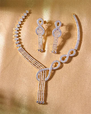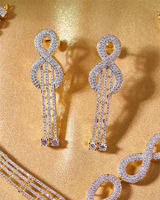 The Eternal Bond Infinity Necklace captures the essence of timeless love and elegance. Fashioned in 92.5% sterling silver with a radiant gold-polished finish, its graceful infinity design is adorned with shimmering white micro stones, symbolizing purity and everlasting brilliance. Perfect for weddings, anniversaries, festive celebrations, or as a heartfelt gift, this necklace is a versatile treasure that adds a touch of sophistication to every moment.