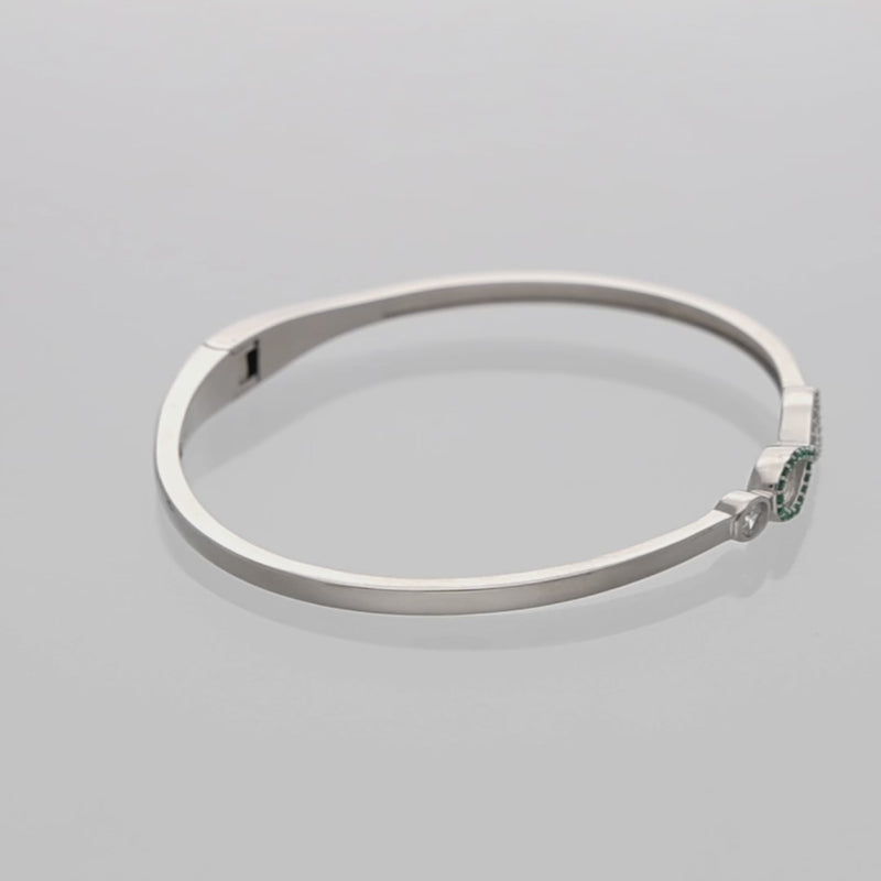 The Eternal Harmony Kada is a radiant ode to balance and beauty. Handcrafted in 92.5% sterling silver with a lustrous rhodium finish, it gracefully pairs an infinity motif adorned with white and green micro stones on one side with a luminous white circular stone on the other. Symbolic yet stylish, this kada embodies everlasting bonds and cherished moments, making it a meaningful treasure for both daily wear and special celebrations.