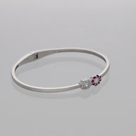The Floral Grace Kada blooms with elegance and charm. Designed in 92.5% sterling silver with a radiant rhodium finish, it features dainty floral motifs at both ends, adorned with sparkling white and soft pink cubic zirconia stones. Its refined oval silhouette makes it effortlessly versatile—perfect for women who embrace sophistication with a graceful touch of femininity, whether for daily wear or special celebrations.