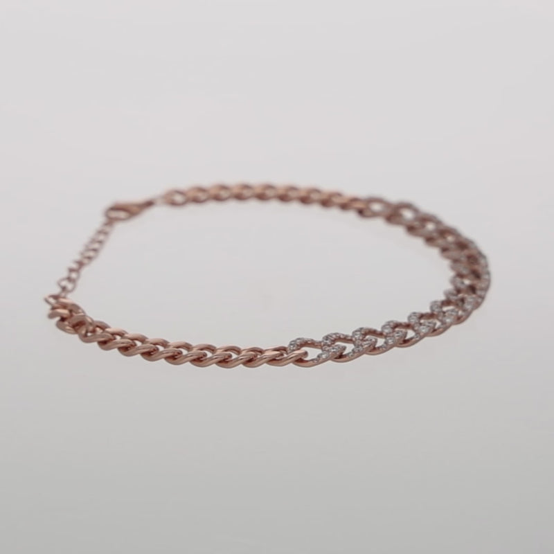 Rose light Core Stone Cuban Bracelet: A refined rose gold Cuban bracelet featuring a striking center section embedded with white stones. Its radiant warmth and clustered sparkle create a harmonious, luxurious look that complements festive, evening, and modern everyday styling with graceful brilliance.