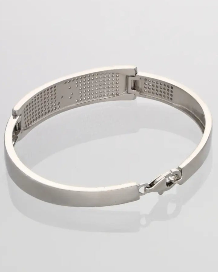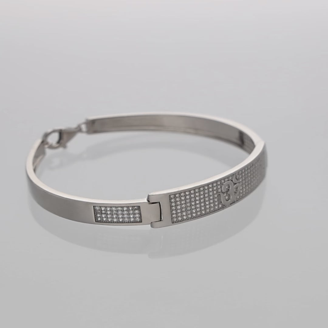 The Sacred OM Kada is where spirituality meets timeless style. Made in 92.5% sterling silver with a radiant rhodium finish, it shimmers with fine white micro stones that draw the eye to its divine centerpiece—the revered OM symbol. More than an accessory, it embodies strength, faith, and inner balance. Thoughtfully designed for men, this kada moves effortlessly from everyday wear to festive occasions, making it a meaningful jewel of both devotion and distinction.