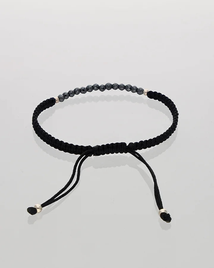 Silver shard Dhaga Bracelet is crafted with a soft black thread and shimmering grey stones highlighted by a polished silver ball accent. Lightweight and adjustable, it offers a refined modern touch while maintaining traditional appeal. Designed for comfort and daily wear, it brings understated charm and versatility to any wrist.