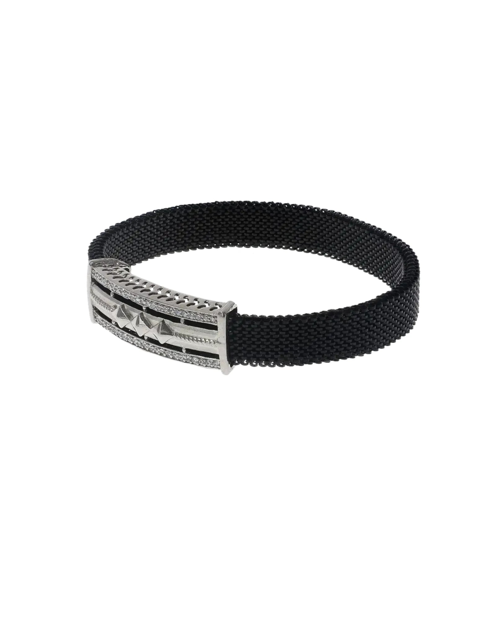 The Gents Adjustable Bracelet from the Silsila Lustre Collection will make you look better. It has a beautiful black woven design that is made even better by the presence of a shiny silver and diamond centerpiece. This is a piece of jewelry that has been designed using 92.5% sterling silver and then given a matte finish. It is the perfect combination between contemporary class and boho-chic panache. This bracelet is an expression of class and can be worn in any setting be it a romantic evening or a party. Not only does it have hypoallergenic and tarnish resistant properties for added comfort and convenience, but it also ensures that one remains beautiful for a long period of time. This is a piece to be given out as a gift or even kept for personal use because of its unique and appealing nature.